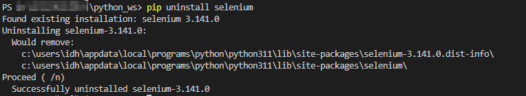 그럴 경우에는 현재 셀레니움 버전을 삭제 후 다른 버전의 셀레니움을 설치해주면 된다.