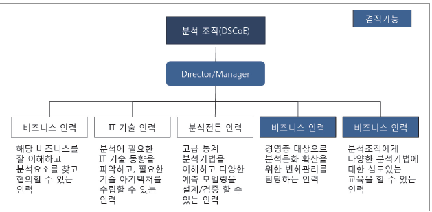전문역량을 갖춘 각 분야의 인재들을 모아 조직을 구성하여 분석 조직의 경쟁력을 극대화 할 수 있다.